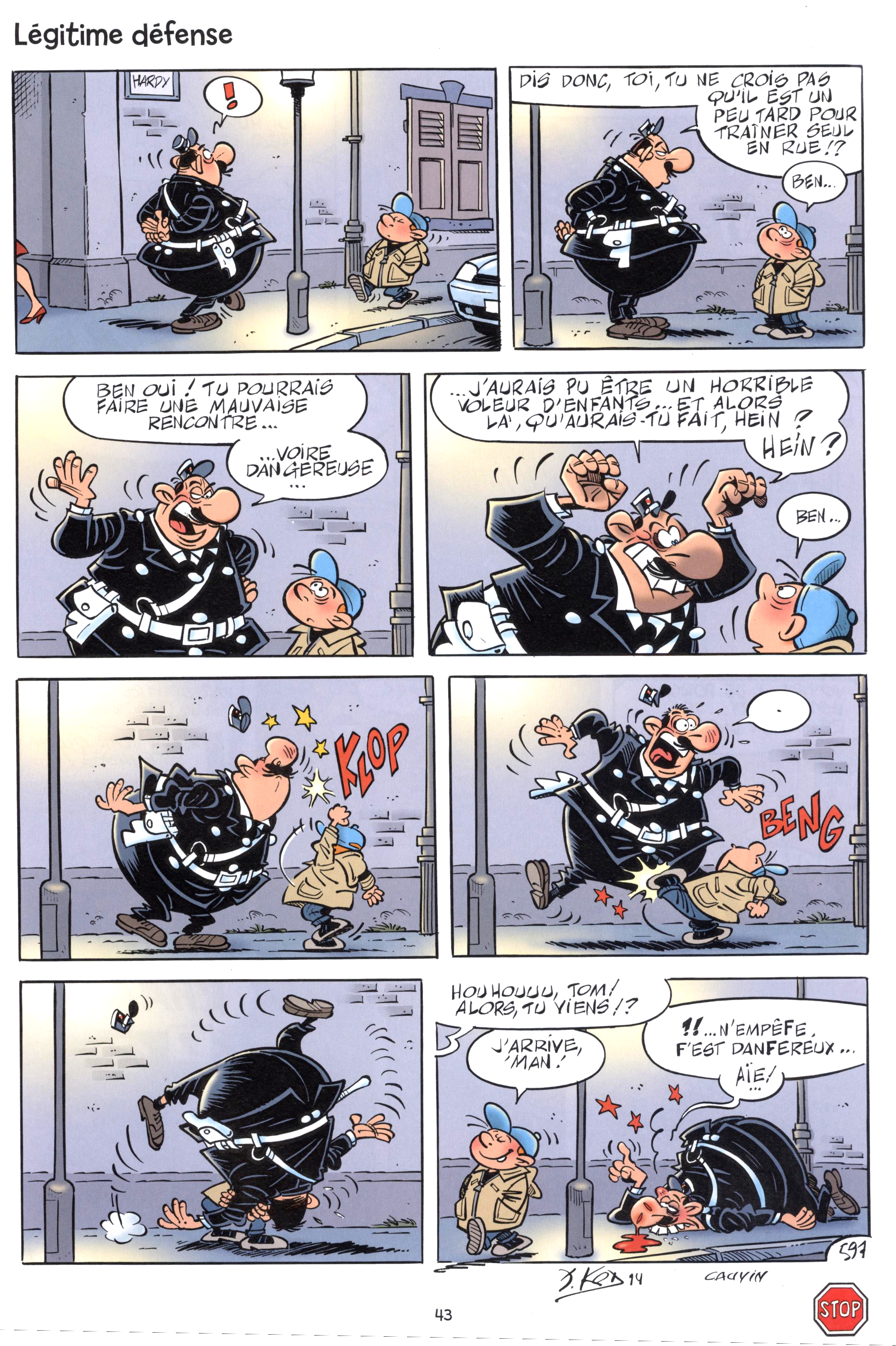 Non. La plus longue histoire, je crois, fait douze pages, dans l’album numéro 4. C’était sympa car on dessine plus vite. Toute l’histoire est sur le même sujet mais ça me lasse plus vite aussi. Dans l’album 25, il y a une histoire avec le GIGN assez longue aussi. Mais dans le prochain album, la plus longue histoire fait quatre pages.
