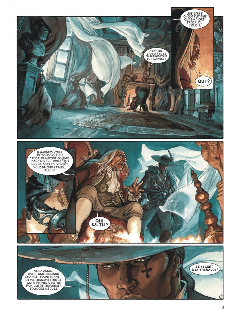 On attendait avec impatience la suite des aventures du Scorpion. Précédemment, il avait appris qui était son père : Orazio Trebaldi. Cette nouvelle à peine digérée, son père est assassiné par un mystérieux tueur. Cosimo va aussi mourir. Il ne reste plus que deux Trebaldi : Nelio et le Scorpion. En fait, trois avec le fils d’Armando. Car le tueur a laissé un message : il en reste un autre. Il en sait autant qu’eux. Stephen Desberg, scénariste, réserve des surprises au lecteur. Notons que ce onzième tome a été co-scénarisé par Enrico Marini. Ils nous présentent des histoires de famille sombres, des guets-apens où la mort rôde. Un nouveau personnage s’impose avec force. Et, puis, il y a ce nouveau chassé-croisé entre Mejaï et Ansea Latal (d’une famille ennemie). On est pas déçu par le scénario et le dialogues. Graphiquement, Marini se surpasse. Ses vignettes sont des peintures. Les courses-poursuites sont très réussies. Les personnages et les décors sont soignés. Les couleurs enrichissent la trame.