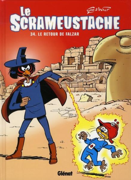 Le retour de Falzar (T.34) est aussi le mien, après une nouvelle éclipse. C’est le dernier album sous le label Dupuis. Dans cette histoire et dans sa suite, j’ai plutôt un rôle de figurant et de comique involontaire de service. Ce tome 35, L’antre de Satic, est le premier album publié aux éditions Glénat sous le label Paris-Bruxelles géré par Walt. Je n’ai jamais compris comment les éditions Dupuis avaient pu laissé filer une telle série comportant l’ADN de leur maison. Même si le Scrameustache continue dans le giron de Glénat, la série a la goût et la couleur de Dupuis.
