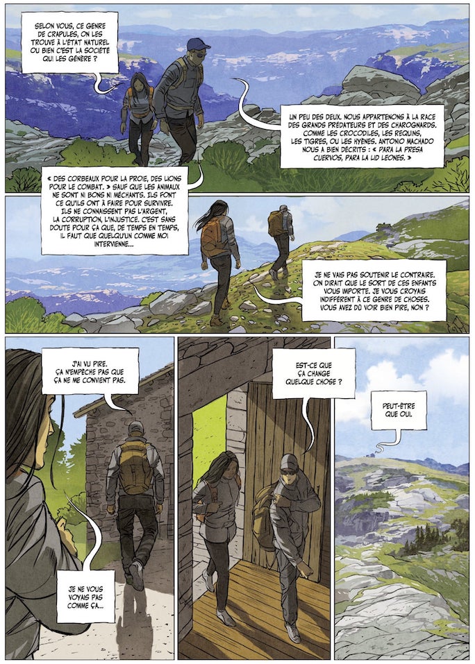 Et paradoxalement, comme pour rendre ce Tueur plus austère, un graphisme à son image. Efficace, propre, net ... soignant décors et atmosphères lumineuses. Grandes cases, panoramas, portraits en gros plans, jouant autant sur les ombres que sur les teintes "naturelles", nous avons parfois l'impression de nous trouver face à une photo couleur dessinée dans laquelle les personnages évoluent aisément !