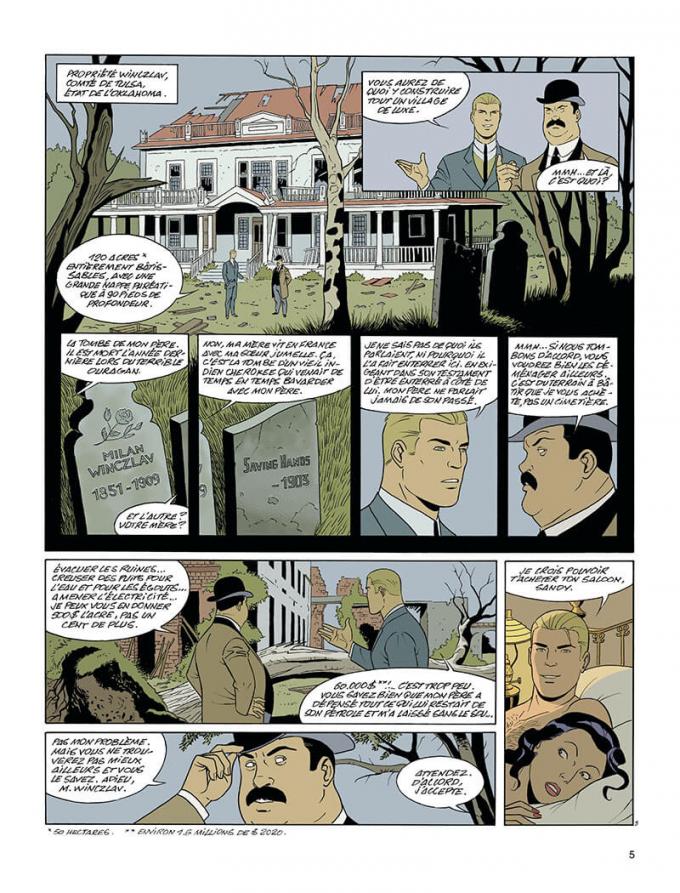 Après un premier tome faisant voyager de l’Europe à l’Amérique, ce deuxième épisode, cette deuxième branche de l’arbre généalogique de Largo Winch prend le chemin inverse. On commence l’aventure avec Tom en 1910 en Oklahoma. On la poursuit avec sa sœur Lisa en France. Entre les deux, leur mère Julie, femme autonome avant l’heure, assemble les pièces d’un puzzle familial compliqué dont elle espère des retombées.