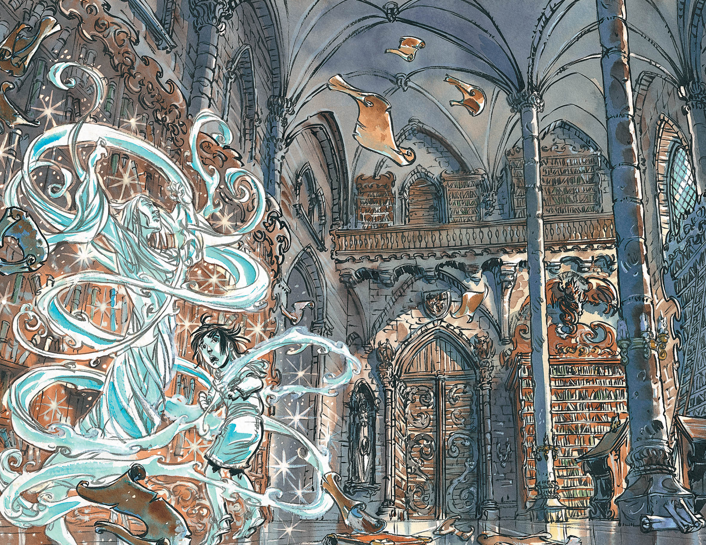 Après « Les enfants magiques », « L’Epreuve du Magicien » et « L’imposteur », respectivement premier, deuxième et troisième épisodes de cette séquence inédite de la grande saga des Chevaliers d’Emeraude en bande dessinée lancée à la rentrée 2011, en voici donc le quatrième volet, toujours signé d’Anne Robillard en personne. Cette dernière nous offre un scénario de fantasy passionnant construit en flashbacks. Ce nouvel album est une fois encore mis en images par le talentueux Tiburce Oger. Ses décors et ses personnages sont grandioses. Les couleurs sont superbes.
