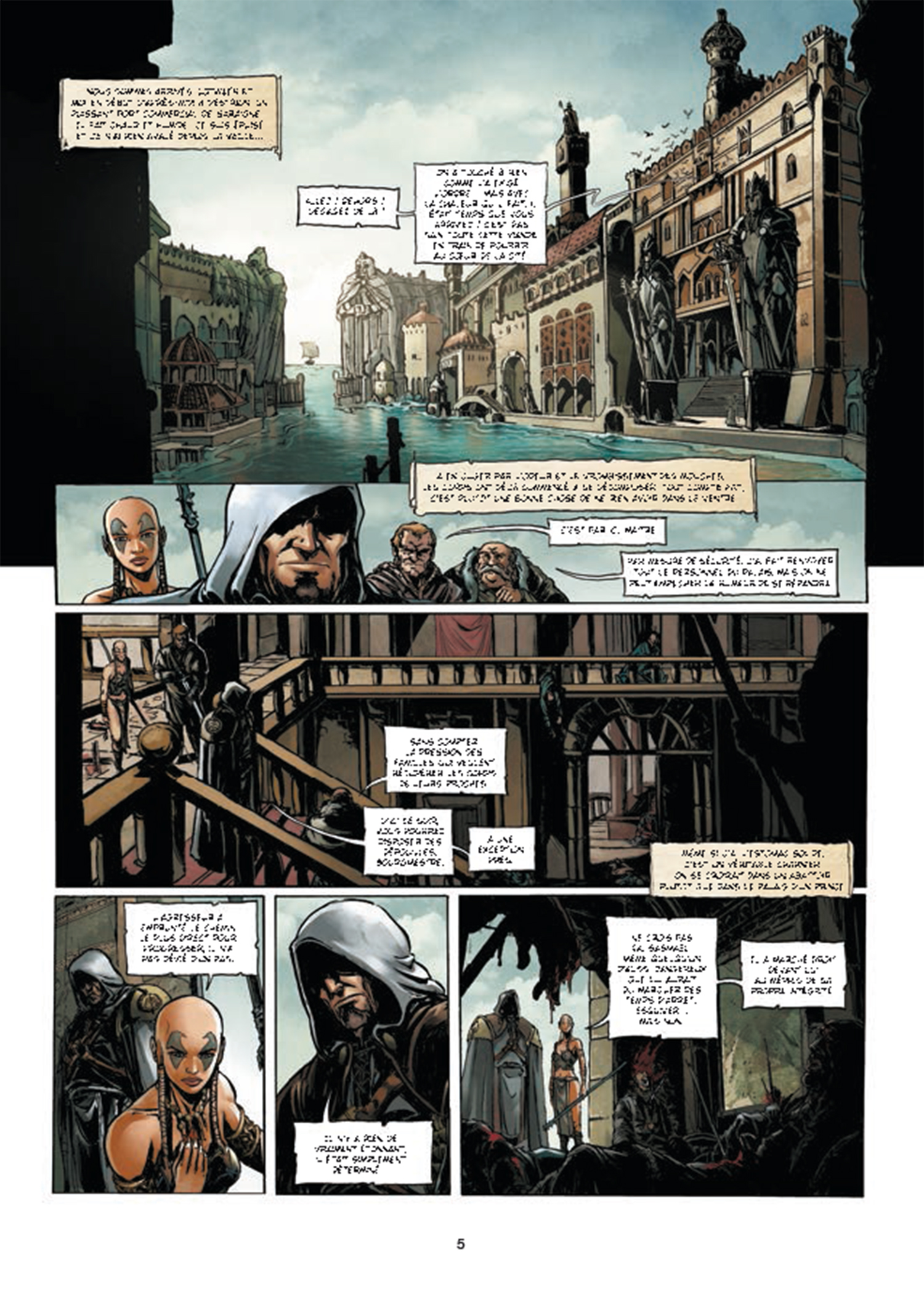 Une large case et nous voilà dans le décor impressionnant de Destrion, ville côtière aux bâtiments à ras la lagune. Pas d'excuse, aussi vite que le trait d'un dessinateur talentueux (comme Paolo Deplano, par exemple), le lecteur est directement emmené dans ce monde parallèle et moyenâgeux des Maîtres Inquisiteurs. "Oui mais c'est le deuxième tome? N'a-t-on pas manqué un épisode?" On l'entend déjà cette question tout à fait logique. Mais non, Soleil fait bien les choses depuis quelques années avec, dans l'ombre "lumineuse" des séries aux long cours, des séries de tomes indépendants, de one shot se déroulant dans le même univers mais avec des intrigues séparées.