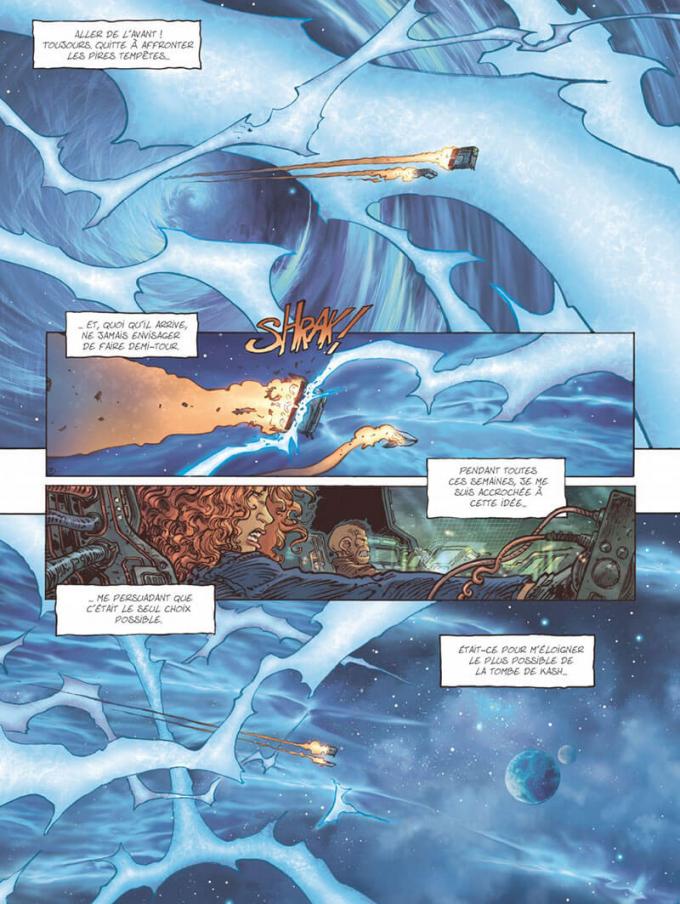 S’il est des auteurs osant faire subir à leur héroïne plus que ce que l’on pensait possible, ce sont bien les Tarquin. Après le cycle du Cristal Rouge, ils embarquent Mony dans un one shot, une course à la vie dont elle ne ressortira pas indemne. On sait qu’il ne faut s’attacher à personne. Kash en a déjà fait les frais contre toute attente. Sa testostérone va être remplacée par celle de Shaël, héritier des Cosmocats, qui prend un rôle prépondérant et semble s’apprêter à passer au premier plan dans le futur.