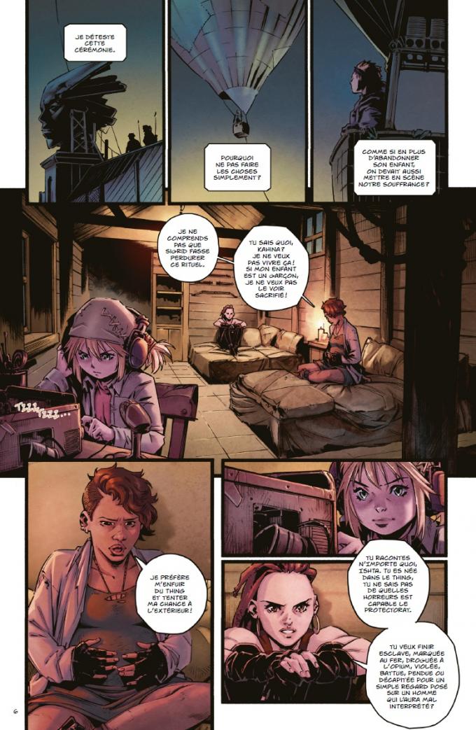 Belen Ortega est une dessinatrice espagnole. Elle a déjà travaillé avec Runberg sur Millenium Saga chez Dupuis. Aux commandes d’un Batman chez DC Comics, elle apporte à Patriarchy tout son savoir-faire dans le domaine du Comics. Les fonds perdus donnent une sensation d’immersion. Les couleurs d’Amparo Crespo enflamment les conflits.