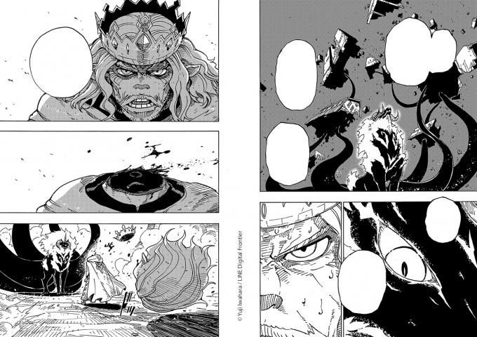 Yuji Iwahara signe une histoire d’heroïc-fantasy moyenâgeuse. Clevatess n’est pas sans rappeler le dragon de La belle au bois dormant. On y retrouve le lyrisme et la cruauté du conte de Perrault. Dans un graphisme classique, dynamique et jeté, les personnages et décors prennent vie dans des mouvements énergiques. On est déjà presque dans un anime. De grandes cases inattendues mettent la focale sur des scènes qui prennent une ampleur nouvelle, spécificité pure de ce genre graphique qu’est le manga.