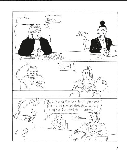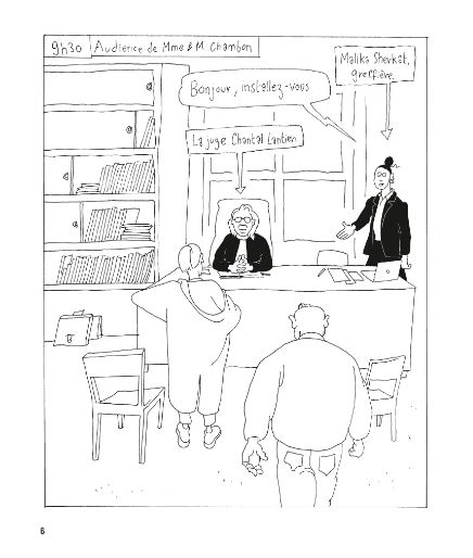 Au travers des yeux de Malika (greffière dans un tribunal), le dessinateur nous fait vivre le quotidien des gens confronté à cette justice des affaires familiales. Du père absent pour sa fille pendant de nombreuses années à celui qui n’hésitera pas à agresser son ex-femme en sortie d’audience, bien d’autres situations sont abordées dans ce livre.