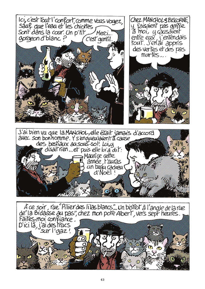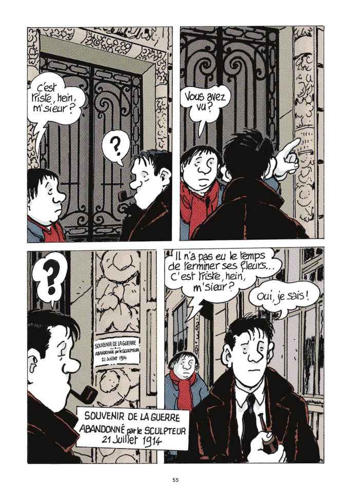 Un mot sur la sublime maquette de l’album, avec un jaspage (impression sur tranche) qui donne l’impression que l’album sort tout droit de l’époque où se déroule l’intrigue. Un cahier graphique clôture le livre, avant qu’une scène post-générique, comme au cinéma, ne vienne rabattre les cartes de l’avenir des personnages.