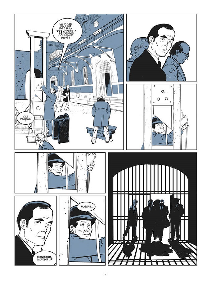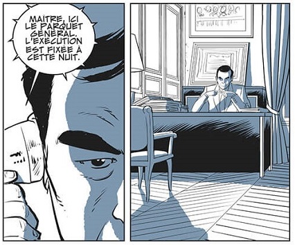 Malo Kerfriden réalise un travail de dessinateur exceptionnel faisant de cet album un livre indispensable. Dans des bichromies sombres et poignantes, Kerfriden met en scène avec autant de force les scènes d’actions que les joutes oratoires. Le chapitre sur Patrick Henry propose notamment un épisode complexe dans lequel la police essaye de reconstituer et de lui faire avouer son crime, avant la découverte du corps de sa victime. Le dessinateur met le lecteur en immersion. Il signe par ailleurs une couverture formidable sur laquelle l’ombre de Badinter est en forme de guillotine, comme pour mieux « guillotiner » la peine de mort.