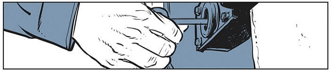 Sébastien Bouët et Fabien Blanchot font une mise en couleurs polar lumineux. Le rouge et le bleu tirent tous deux vers le noir rajoutant de la tension au drame.