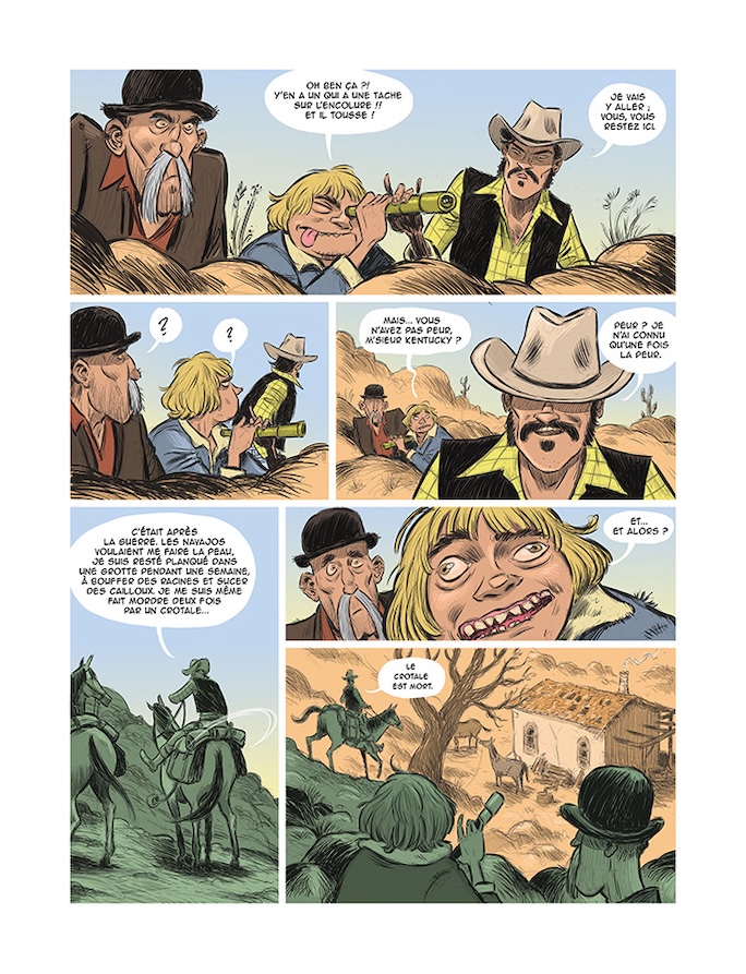 Signée par Philippe Pelaez, dessinée et mise en couleurs par Sébastien Corbet, l’œuvre est une parodie dynamique et un hommage aux westerns spaghetti de Sergio Leone et Sergio Corbucci. Nous pourrions même y ajouter quelques grammes de plomb à la Tarantino !