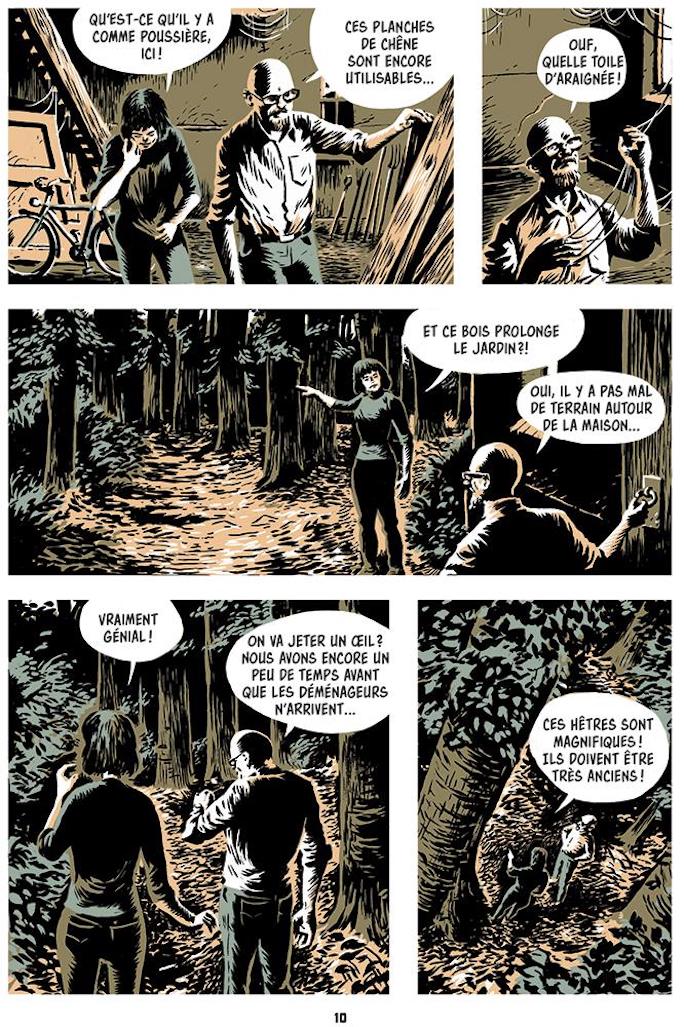 Si certaines clés et éléments classiques du genre sont utilisés pour amener le suspense, la psychose s'installe doucement au fur et à mesure des pages. Les gravures sur les arbres entourant une mare étrange d'une eau noire inquiétante, des carnets remplis de formules et signes diaboliques, le récit maudit de la vie du grand-oncle qui semble avoir perdu la tête, la vieille voisine et ses avertissements, la réputation maléfique du domaine dans le voisinage, ... et j'en passe !