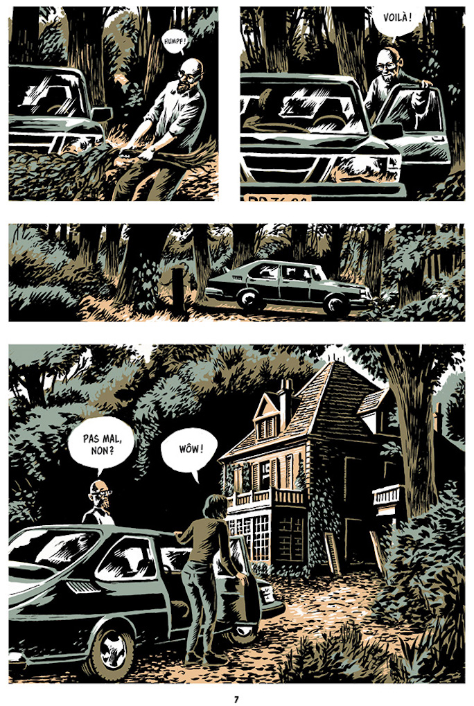 Intrigue également qui est largement soutenue, renforcée par le style graphique d'Erik Kriek ! Un dessin à la fois sobre et sombre, lourd dans ses traits, offrant aux expressions faciales, aux décors, à l'atmosphère la touche de psychose supplémentaire à assumer. Le tout est éclairé de façon angoissante par une palette de couleur restreinte, comme Erik à l'habitude de faire.