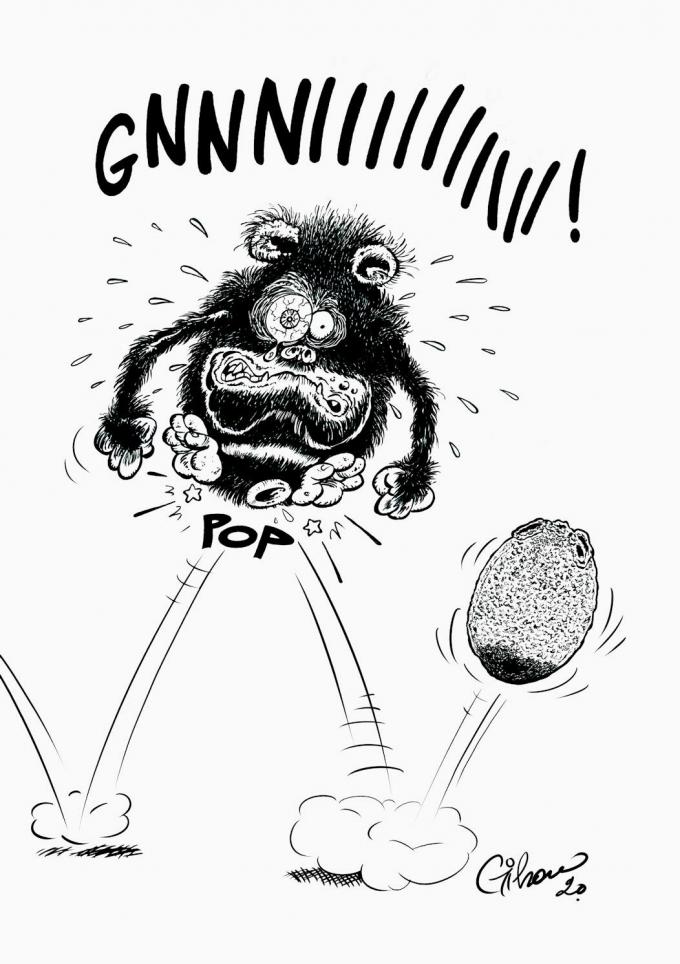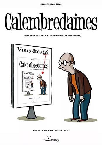 Il y a une vingtaine d’années que j’ai commencé à faire des calembredaines, mais chez Eric Lamiroy, l’album est paru il y a à peu près quatre ans. Le livre comportait une centaine de dessins. C’était un format vertical, mais il n’y a eu que 50 exemplaires qui se sont très vite vendus. Pour la petite histoire, on travaillait avec un imprimeur français qui pouvait faire des petits tirages. Comme cela, Eric Lamiroy ne prenait pas trop de risques financiers. Quand l’album a été épuisé, on a voulu le rééditer mais cet imprimeur était décédé et hélas personne n’a repris sa succession. Vu l’engouement sur les réseaux sociaux pour mes petites bêtises, on a décidé de refaire un album beaucoup plus fourni. Il y a 330 dessins, si je ne me trompe pas. J’ai demandé à Philippe Geluck si je pouvais réutiliser la préface qu’il m’avait faite. Il a accepté. On a sorti un bel album grâce à un crowdfouding.