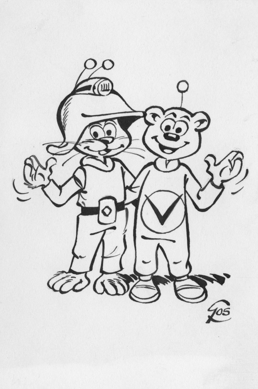 Un an après ma démission, Peyo m’a rappelé. Derib repartait en Suisse. Il m’a demandé que si la place m’intéressait, elle était pour moi. Entretemps, il m’avait engagé pour faire du lettrage pour Johan et Pirlouit, les Schtroumpfs et Benoit Brisefer, ce qui fait que je suis un des rares à connaître les « bas de casse » (lettrage en caractères d’imprimerie minuscules) que les autres ne maîtrisent pas. C’est pour cela que Dupuis m’a demandé de faire du « bas de casse » sur le Scrameustache, que j’avais commencé en textes majuscules, car s’adressant à des petits, ils retrouvaient une écriture proche de l’écriture cursive qu’on leur apprenait alors à l’école.