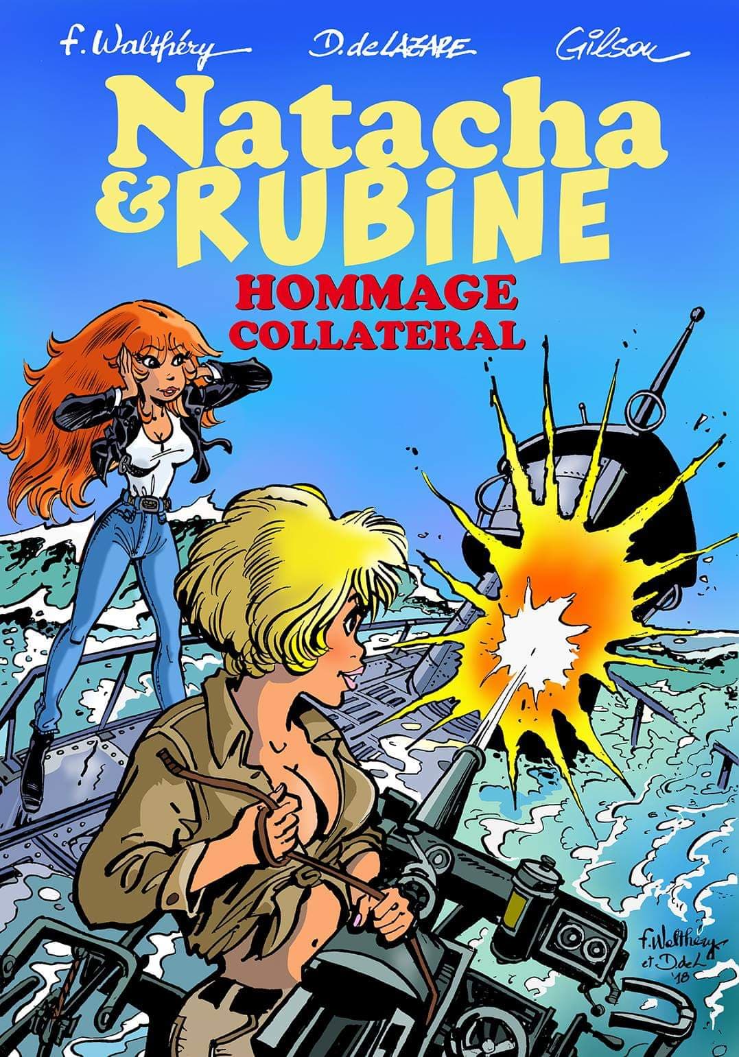 Parallèlement, deux de ses amis et collaborateurs de longue date, Dragan de Lazare et Gilson, livrent une compilation de pastiche et de parodie réunissant pour le plus grand plaisir des lecteurs Rubine et Natacha. Deux héroïnes emblématiques traitées avec respect et emmenées dans différents univers pour profiter de l’occasion pour rendre aussi hommage à quelques autres grands maîtres de cet Art. Hommage Collatéral, un album pour lequel nous avons collaboré à la finition en réalisant une interview des deux auteurs, en fin d’album. En voici des morceaux choisis à lire en intégrale dans l'album si vous le possédez déjà.
