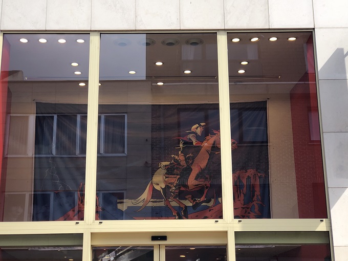 R.L. : Oui, on a d’abord Philippe Jarbinet qui viendra pour son nouvel Airborne. On devait faire venir Matthieu Bonhomme pour Lucky Luke. Pour lui, on organisera un système de concours par le net, avec des dédicaces … mais il y aura quand même un ex-libris, on publie une sérigraphie. Et il y a la fabuleuse bâche qui se trouve là, juste à l’entrée qui a une légitimité puisque Lucky Luke est un peu né à Waterloo en 1946. Cela fait juste 75 ans, donc c’est parfait. Et on aimerait continuer à défendre l’image du personnage … à Waterloo parce qu’il y a une véritable légitimité à travailler un personnage comme ça … (la suite sur le lien ci-dessous)