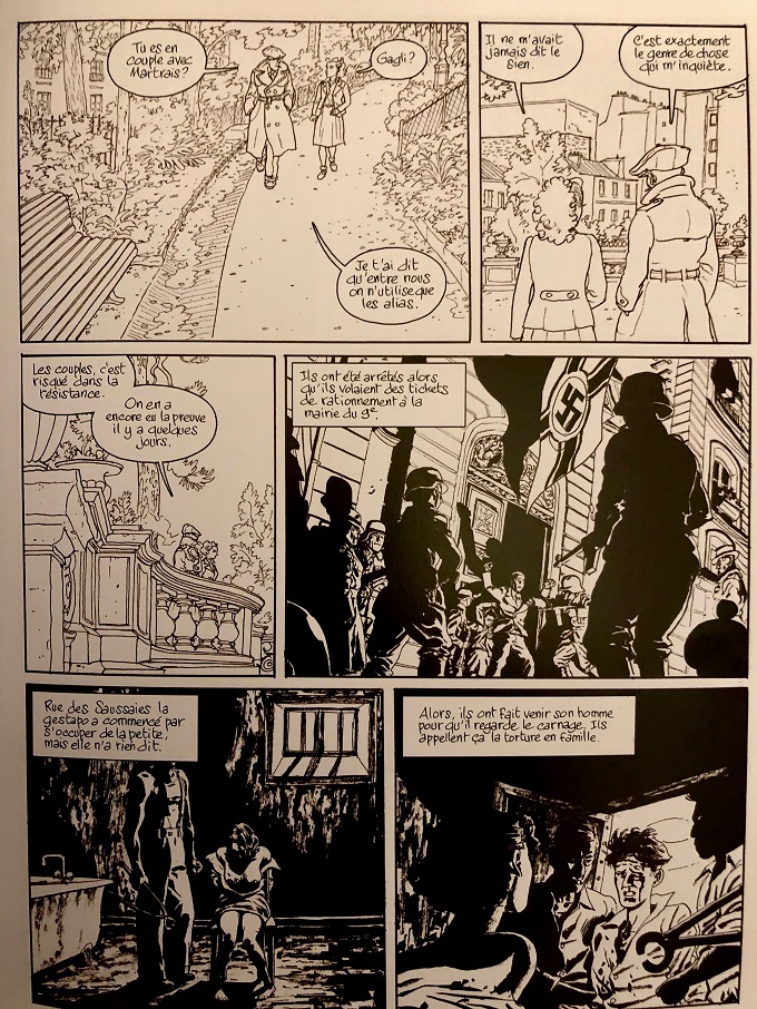 La Galerie Champaka a le grand privilège de présenter un dispositif de plus de 80 planches couvrant les 20 premiers albums de la série. Au recto des planches originales, l’encrage puissant et précis de Mitacq et, au verso, jusqu’au tome 16, les indications couleurs visibles par transparence. A ce somptueux dispositif s’ajoutent 6 projets de couvertures en couleurs !