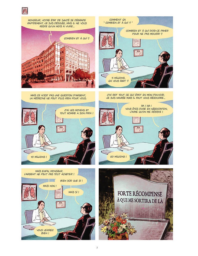 Tel ce patient à qui on annonce qu’il n’a plus qu’un mois à vivre et qui essaie de soudoyer son médecin proposant d’acheter un répit et dont on peut lire sur l’épithète tombale « forte récompense à qui me sortira de là » !