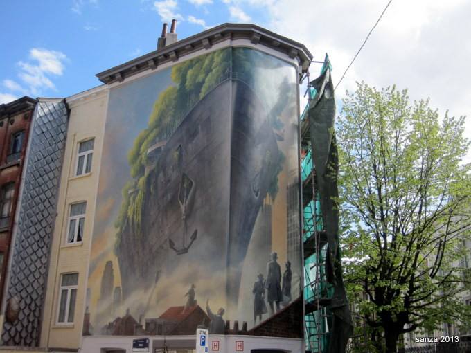La Fresque murale "l'Arche" se trouve à l'angle de la Chaussée d'Ixelles et de la Rue Maes.
