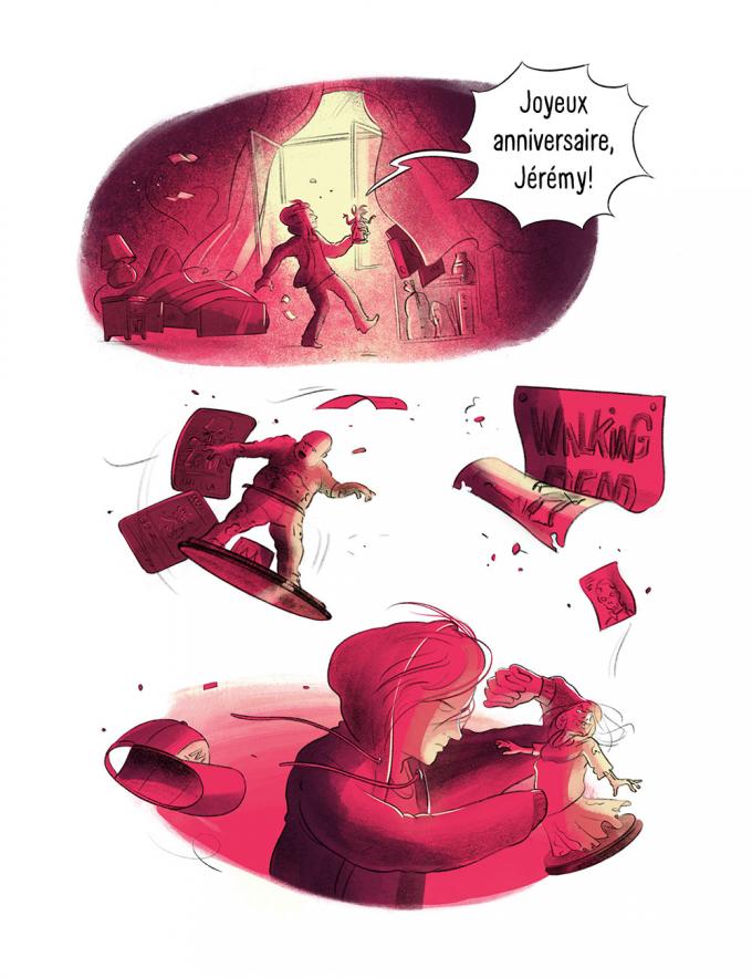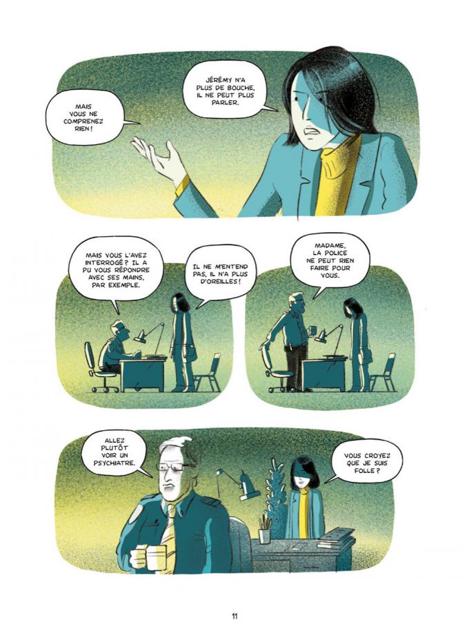 Jérémy n’a plus de bouche. Il ne peut plus parler. Jérémy n’a plus d’oreille. Il ne peut plus entendre. Jérémy n’a plus de nez. Il ne peut plus sentir. Jérémy n’a plus d’yeux. Il ne peut plus voir. L’ado ne veut plus sortir de sa chambre. Sa mère fait appel à un psychiatre, à un curé,… Maladie ? Malédiction ? Quelqu’un pourra-t-il faire quelque chose pour lui ? Son papa est absent. Il travaille dans l’humanitaire en Afrique dans des camps de réfugiés. La maman de Jérémy est désemparée face à une telle situation hors du commun.