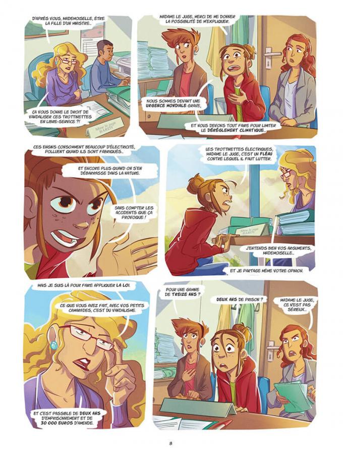 Bonus instructifs, les auteurs ont intégré à leur histoire des pages didactiques, par l’intermédiaire de la tablette d’Ehma. On en apprend ainsi plus sur les bio-carburants, fausse bonne idée, les méfaits de la climatisation et la démoustication. La lecture reste fluide. L’éditeur aurait pu en faire une BD 2.0 avec des QR codes qui auraient permis d’aller glaner ces infos sur le web… mais cela aurait été en contradiction avec le message écologique des Belles vertes.