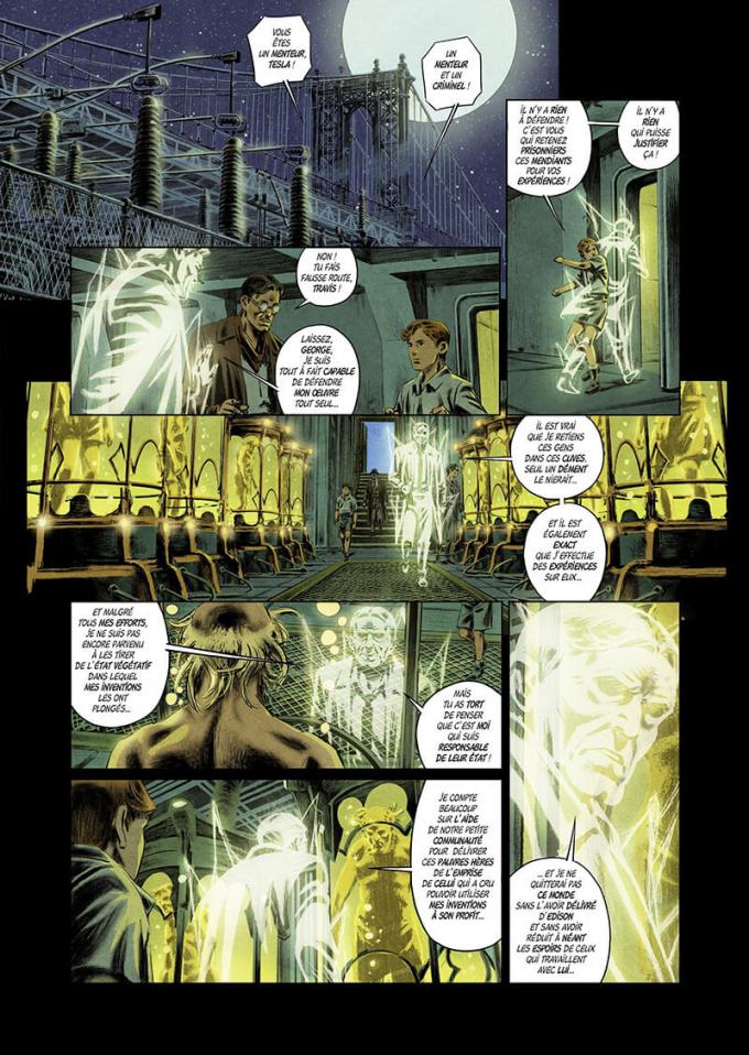 L’esprit de Nikola Tesla peut compter sur le jeune Travis. Le gamin ne dira rien. Mais Edison est un ennemi bien redoutable à craindre. On peut être mort et dangereux à la fois. C’est ce qu’apprend Travis en servant d’intermédiaire physique à Tesla. Le savant va l’entraîner dans ses laboratoires secrets pour vérifier que ses recherches sont en sécurité, puis organiser l’exfiltration de ses découvertes.