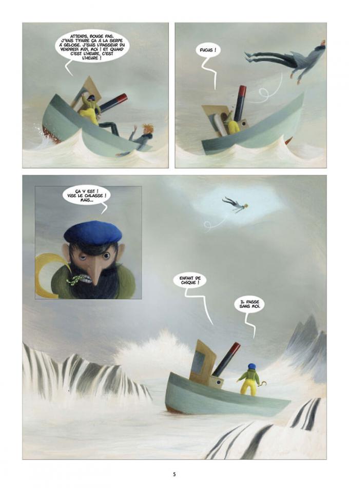 « - Mais enfin, qu’est-ce que c’est que cet olibrius !? Bon, montez à bord, gamin, et tenez-vous tranquille !