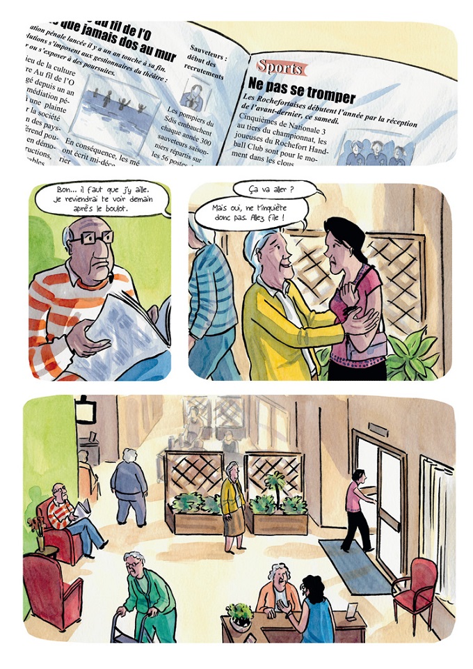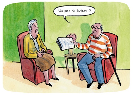 On dit toujours qu’en littérature, en chanson ou au cinéma, il est beaucoup plus facile de faire pleurer que de faire rire. Essayez donc dans un EPHAD. Lambert y parvient avec un naturel qui ne peut être feint. Et pour cause. L’album a été co-écrit lors d’ateliers BD avec les pensionnaires d’une maison de retraite. Colette et Jean existent mais n’existent pas. Ils sont un mélange des pensionnaires de la résidence. Scène par scène, ils ont dirigé et validé le scénario. Il en résulte une vraie « intrigue » avec situation de départ, problématique et résolution, comme dans une « vraie » histoire. Peut-être est-ce parce qu’elle est tout simplement « vraie » ?