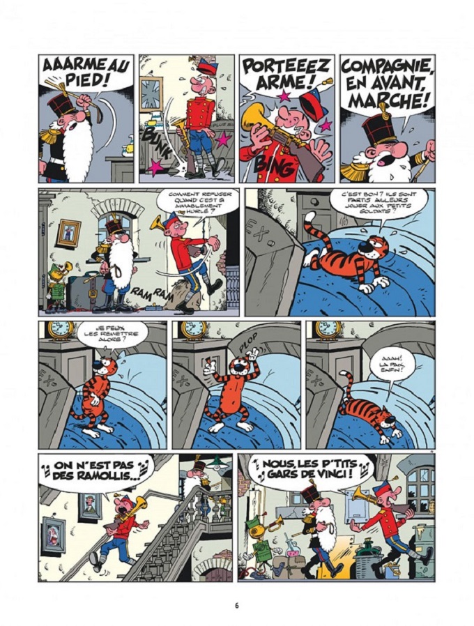 Même si l’essentiel est sur la thématique militaire, des gags ou historiettes avec inventions diverses et variées complètent l’album, de la tapette à souris à la planche à billets, du char-wash à l’opéra.