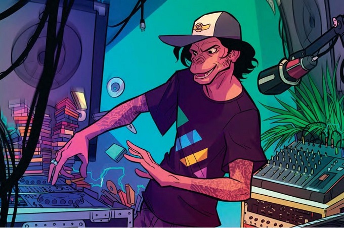 Ce que ne savent pas encore l’adolescent et sa famille, c’est que Kid Noize est le nom de cet homme à tête de singe venu d’ailleurs, descendu d’une voiture surgie d’un étonnant triangle bleu. Au volant de sa voiture, tel Marty McFly dans Retour vers le futur, il circule d’un monde à l’autre par l’intermédiaire de ce triangle lumineux.
