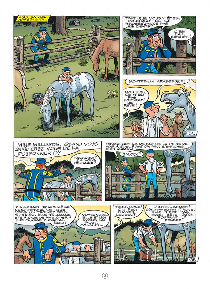 As du dialogue, le scénariste assure des joutes oratoires habituelles entre les deux plus célèbres soldats de l’armée américaine, que l’on attend comme des marronniers. Qui plus est, Blutch et Chesterfield vont retrouver leur plus fidèle ennemi.