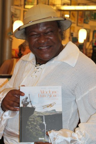 C’est à Dakar que je rencontre le scénariste Frank Giroud avec qui je réalise de 1995 à 1998 la célèbre trilogie congolaise « Eva K » aux éditions Soleil. Cette fructueuse collaboration se poursuivra plusieurs années avec la série « Mandrill » publiée chez Glénat Editeur (7 tomes). 2014, Barly Baruti’s Back! Je reviens avec un nouvel album toujours chez Glénat Éditeur: “Madame Livingstone”. Scénario de Christophe Cassiau-Haurie d’après un récit de Appollo.