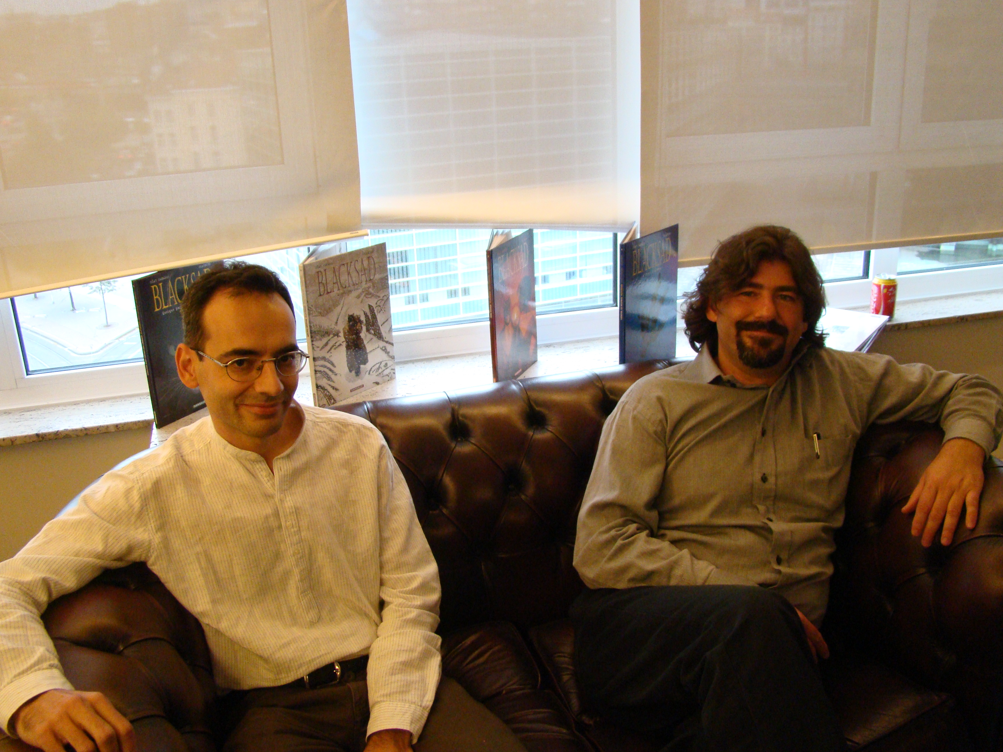 Guarnido : Moi, j’ai le dernier numéro de la série Voyageur que je dois dessiner très prochainement. Après ce sera le troisième tome de Sorcelleries… et après, plus que probablement, je me mets tout de suite au cinquième Blacksad. Il y a un projet de one-shot aussi que je ferai immédiatement… j’avais envisagé de le faire avant le cinquième Blacksad mais ça le reporterait à trop loin donc je ne peut pas faire autrement que… ce one-shot, je le ferai immédiatement après. Ce sera entre le Blacksad cinq et six. C’est un projet que je vais faire avec un scénariste français, un de mes préférés et je pense que ce sera un bel album.