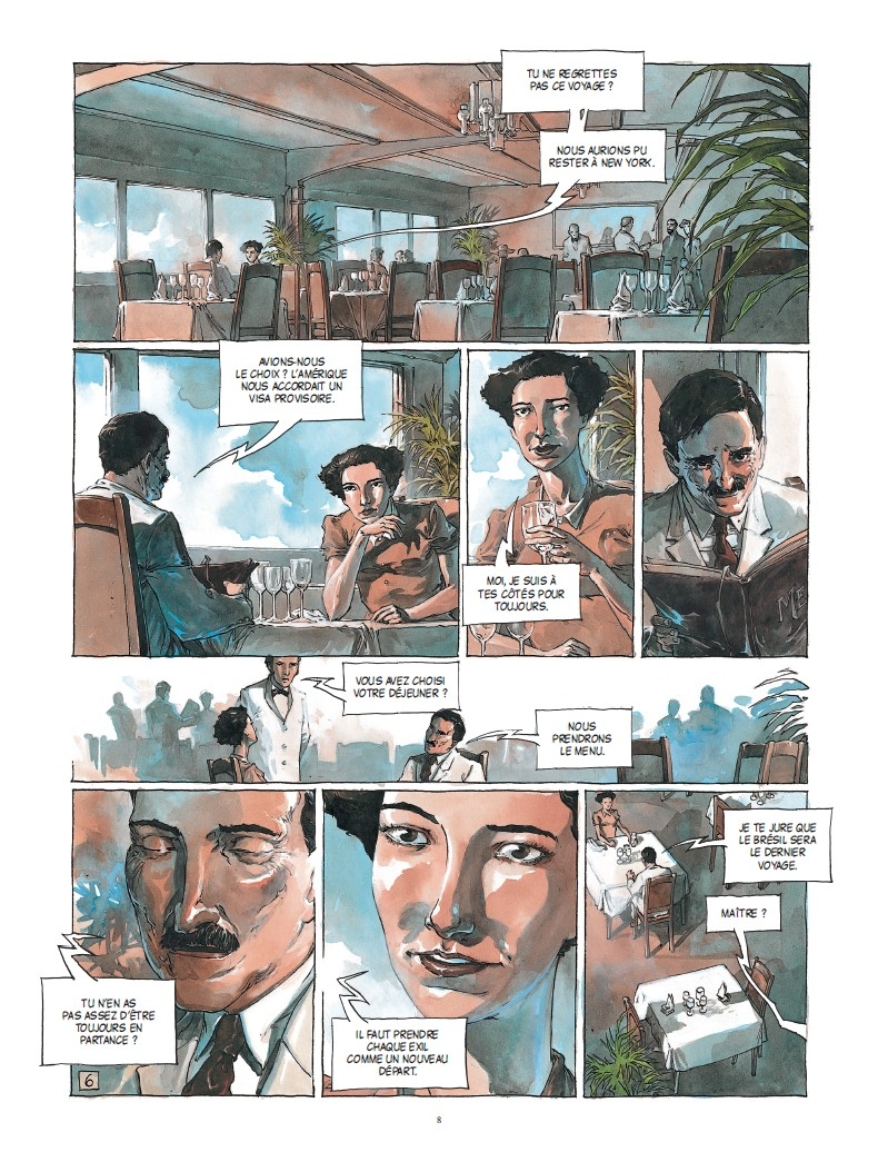 Seksik : J’ai adapté mon roman en bande dessiné parce que je pensais que cela pouvait servir cette histoire. Cette histoire de Stephan Zweig, qui est à la fois exceptionnelle et tragique, qui se déroule dans un lieu d’exception qui est le Brésil, pouvait autant être valorisée par la BD que par le roman. C’est une autre façon de raconter cette histoire qui me tient à cœur depuis des décennies et qui, je pense, méritait d’être vu autant que lu.