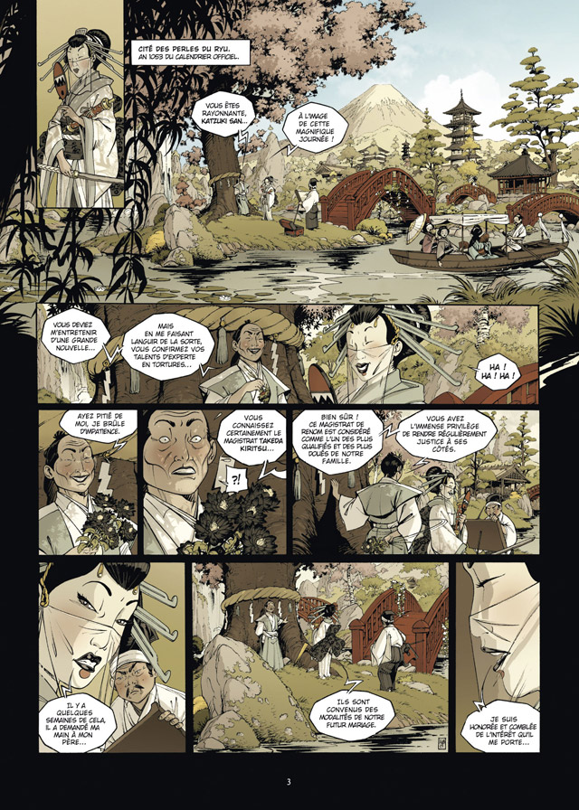 C'est exact, j'ai une bonne bibliothèque de documentation sur le Japon et internet est un outil fabuleux et très efficace pour trouver certains détails "pointus". Ensuite je digère ces informations et je prend une certaine liberté par rapport à l'histoire officiel du japon féodal puisque mon récit est fictif et se passe dans un empire imaginaire… L'empire du Pajan pour ne pas le nommer !