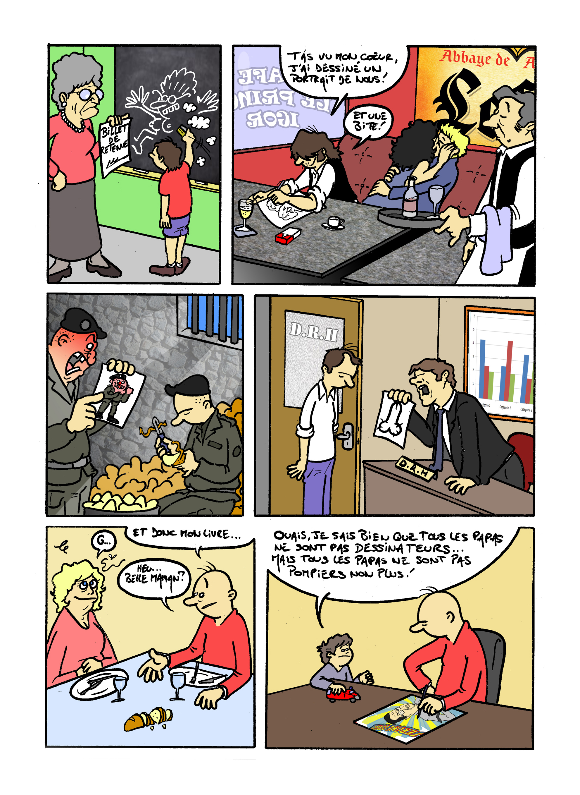 Bon sérieusement, comme beaucoup d’auteurs de ma génération je suis issu des blogs bd (je vous parle d’un temps que les moins de vingt ans ne peuvent pas connaitre), passé d’un blog à moi tout seul, puis un blog collectif les Lézarts Maniacs créé par Alain Rorive (qui a eu la gentillesse de venir me chercher et où j’ai fais mes premières armes aux côté de mon ami et co auteur préféré Papybic), puis quelques fanzines de ci de là et aujourd’hui la famille FGH où l’on retrouve mes aventures dans le collectif bd autobiographique Egoscopic … En attendant qu’on me propose de reprendre les aventures de Tintin (ben quoi ? on peut rêver non ?)