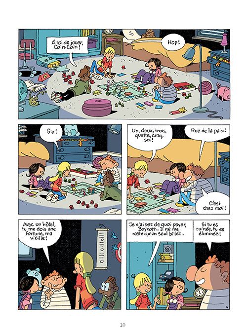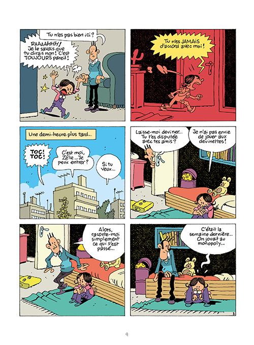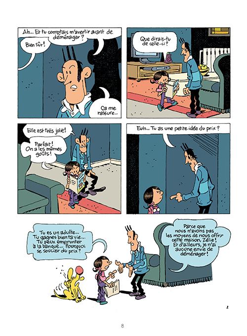 Mais qu’est-ce qui a pris à Zélie de commander un catalogue d’agence immobilière ? Voilà pas qu’elle veut déménager ! Elle avoue à son papa que c’est depuis qu’elle a joué au Monopoly la semaine passée avec ses camarades. Pris au jeu, les enfants se sont mis à rêver qu’ils pourraient acheter de vrais bâtiments avec les billets factices. Dans la surenchère des délires, Zélie a prétendu bientôt avoir une vraie maison. Elle est maintenant empêtrée dans un mensonge dont seul son père pourrait la sortir. C’est la première des cinq histoires qui composent ce deuxième volume du revival de Zélie & compagnie aux éditions Des ronds dans l’O.
