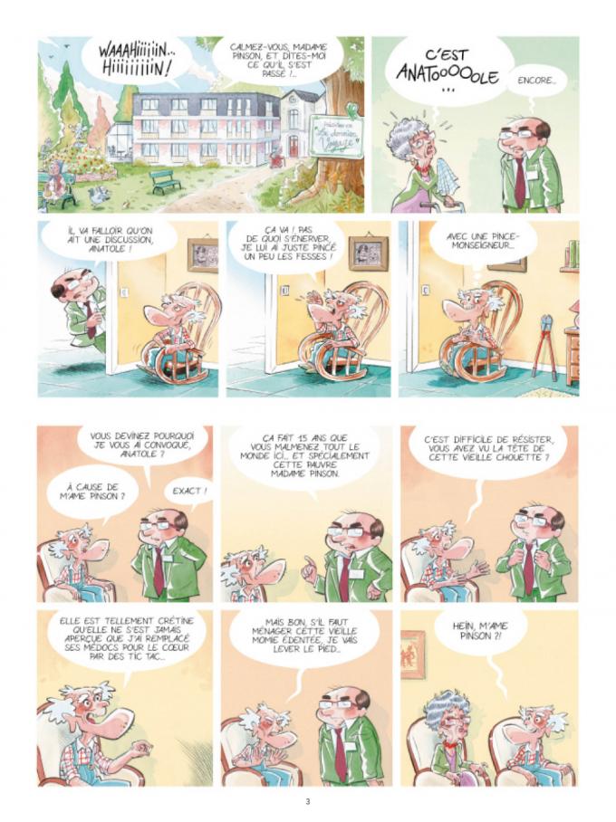 On connaissait les Seignors de Sti, Richez et Juan chez Bamboo dans leur pension privative de luxe. Il va falloir supporter les insupportables Anatole et Léontine qui tentent de suspendre le vol du temps mais pas celui du rire, aussi irrévérencieux soit-il.