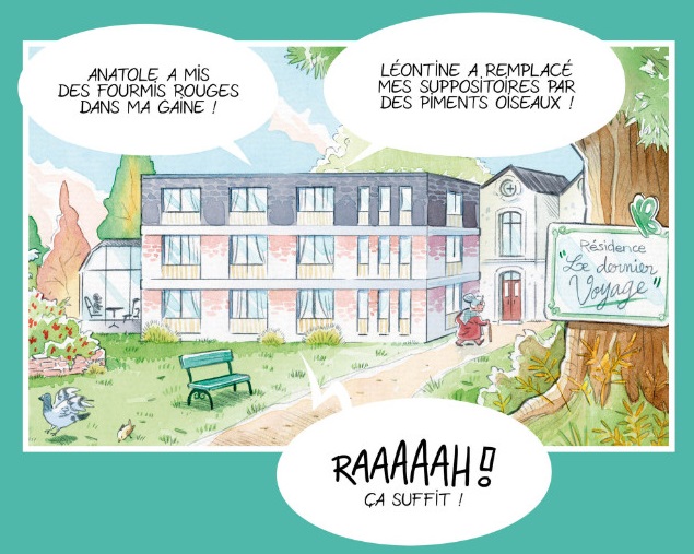 Quand Anatole attend l’arrivée d’une nouvelle pensionnaire à l’Ehpad, il ne se doute pas qu’elle va être tout aussi sale gosse que lui. En vieille dame indigne, Léontine va mettre un coup de balai dans la résidence « Le dernier voyage ». Le directeur, les aides-soignants et les autres pensionnaires, s’ils pensaient connaître ce qu’il pouvait y avoir de plus désagréable et politiquement incorrect avec Anatole, ne vont pas être déçus de la nouvelle recrue. Comme on dit, les deux font la paire !