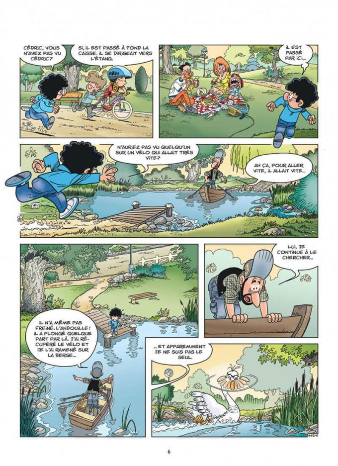 Mais qu’a-t-il donc pris à Christian d’aller prévenir Cédric que Nicolas apprenait à faire du vélo à Chen ? Il n’en fallait pas plus pour énerver notre petit blondinet préféré. Evidemment, son pote Félix va lui prêter un vélo pour qu’il s’y mette aussi. Mais avec Cédric, maladroit et tête brûlé, tout ne se passe jamais comme prévu. Mais ça, ce n’est que la première histoire de cette nouvelle fournée d’aventures du quotidien de Cédric.
