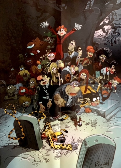 Quatre récits complets foutent la trouille de rire dans le magazine. C’est l’occasion de lire une aventure spéciale de Six coups, une histoire de doudou par l’hilarant Dab’s, un récit du trop rare Clarke, ainsi qu’un roman-photo horrifique qui nous amène dans les couloirs de la rédac’. Renaud Collin signe un superbe poster Halloween comme on les aime, mettant en scène de nombreux personnages du journal façon zombies.