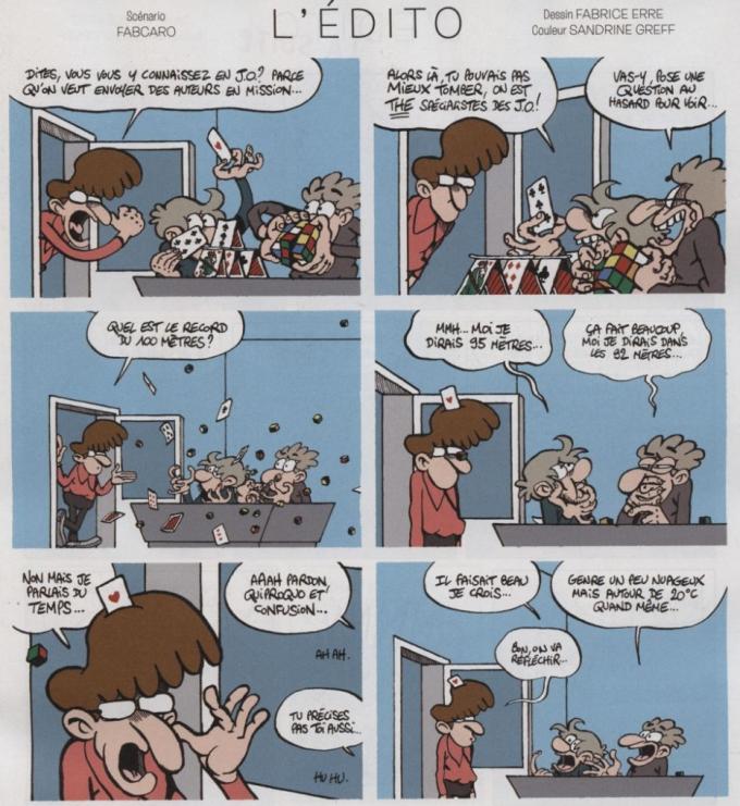 Coiffé de la mascotte des jeux olympiques de Paris 2024, le Marsupilami signé Munuera bondit devant la Tour Eiffel. La bestiole va se trouver plusieurs fois à l'honneur. Dans un conte reportage signé Maxime Gillio et illustré par le même Munuera, on le verra pratiquer plusieurs sports. Dans un récit complet signé Marko et BeKa, il aura à faire au redoutable (sauf pour lui) chasseur Bring M'Backalive. D'autres gags et animations sont aux couleurs de l'olympisme.