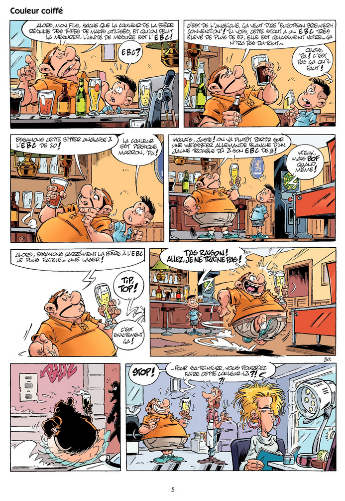 En fait, chez Poje, le principe était vraiment de parler du bar et du barman. « Les fondus » est une série aussi un petit peu didactique On voulait donc parler de la bière, mais pas du côté pochetron. Sur l'album, il y a un ou deux gags qui traitent de ça, mais dans le reste, on parle de la bière, du produit, comment ça se fabrique, comment le déguster, comment le cuisiner, plein de choses comme ça.
