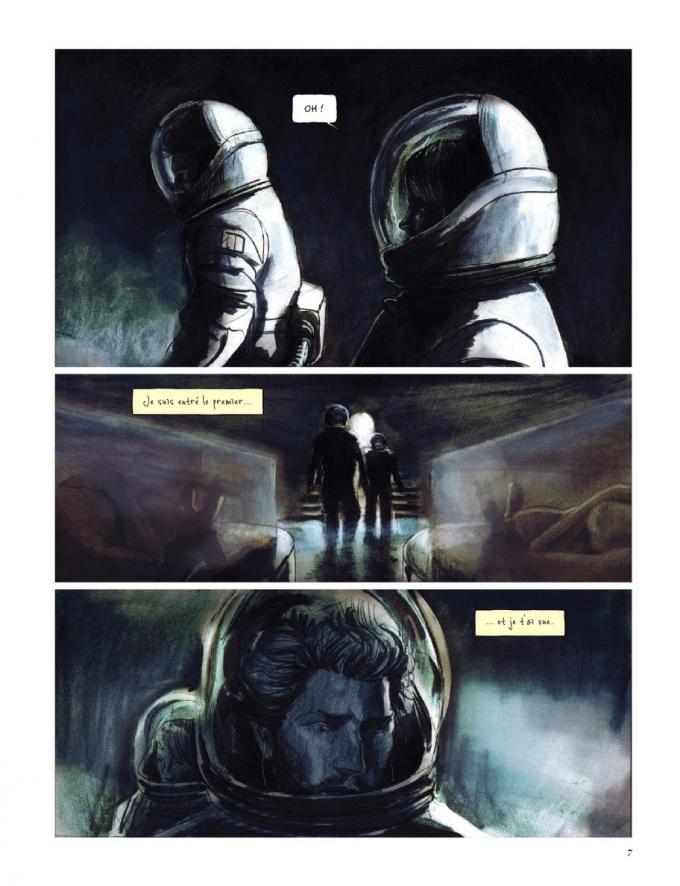 Christian de Metter est, plus qu’un habitué, un spécialiste des adaptations littéraires en bandes dessinées. Son adaptation du Shutter Island de Dennis Lahane, du Scarface d’Armitage Trail ou encore celle d’Au revoir là-haut et Couleurs de l’incendie de Pierre Lemaître étaient magistrales. On aurait pu penser Barjavel inadaptable. Macutay et Morvan s’étaient attaqués à Ravage. De Metter s’attaque à La nuit des temps qui, avant d’être un roman était un projet de film avorté. Revisite de La Belle au bois dormant et de Roméo et Juliette, La nuit des temps est une histoire d’amour à mort. Une fois que l’on a ouvert l’album malgré une couverture certes esthétique mais pas réellement efficace, on réalise comment De Metter apporte la noirceur de ses ambiances à la tragédie. Il réalise une véritable adaptation, permettant au roman d’être abordé sous un éclairage nouveau grâce au média BD.