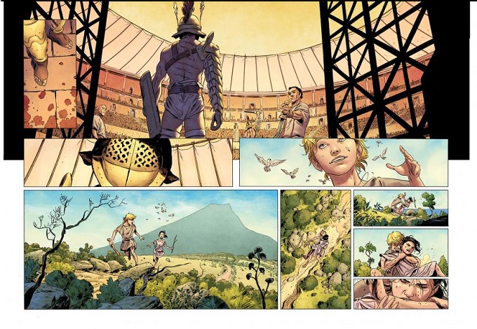 Petit patchwork mêlant « Gladiator », « Pompéi » de Paul W. S. Anderson et quelques autres péplums célèbres, Trifogli réussit un scénario original, même si de premier abord plutôt classique. Et pour une fois, il ne se dédouble pas en Trif pour une version plus « hot » de cette nouvelle série, probablement et logiquement dû à l’âge de ses héros en début de récit !