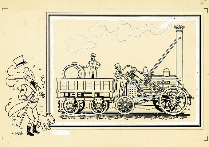 Bref, plus qu’un simple moyen de locomotion, il est évident qu’Hergé adorait les trains ! Les possibilités qu’ils offraient de voyager, se déplacer facilement ici ou là étaient souvent source de péripéties aventureuses, d’espoirs de liberté, de cascades et scènes à sensation.