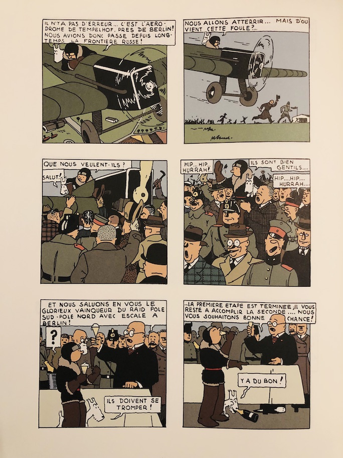 En sachant que ces planches d’origine diffèrent totalement de celles reprises dans les « éditions courantes », nous n’en apprécions que plus tout le chemin graphique parcouru ensuite par Hergé. Il en est de même pour le découpage des pages … puisqu’au départ Hergé les divisait en 3 strips et non en 4 comme ce sera le cas ensuite. Le rythme de lecture lui-même en a ainsi été modifié.