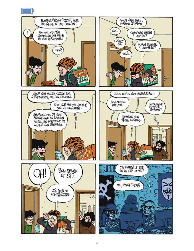 Au fil de l’album, les cul-de-lampes des gags ou histoires courtes présentent une batterie se déchargeant au fur et à mesure. Cela symbolise parfaitement l’état d’esprit des humains en pleine dépendance et dont le stress monte de façon inversement proportionnelle. Erre nous aiderait-il à éteindre notre smartphone ? Si on a de l’humour sur soi, oui, c’est certain. Et si grâce à cet album, quelques lecteurs prennent conscience de nos dérives et lisent de plus en plus de BD, le pari est gagné. Comme l’humour Fluide est en plein renouveau et totale extension, il y a de quoi faire.