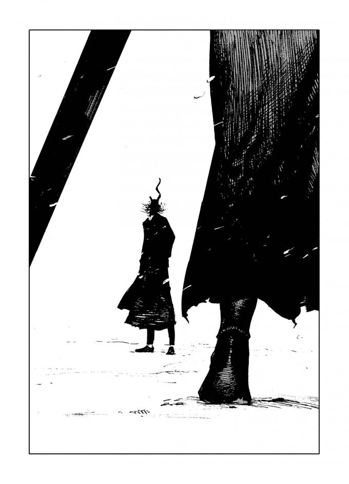Il y a quelque chose d’exceptionnel dans l’histoire de L’enfant et le maudit. Nagabe est un virtuose pour faire avancer son récit. Le mangaka invente les scènes d’action contemplatives. La scène du coup d’épée reçu dans le dos par la petite est un exemple de découpage à étudier dans les écoles de graphisme. De l’impact à la chute du corps en passant par le reflet dans la lame, les pages sont époustouflantes.